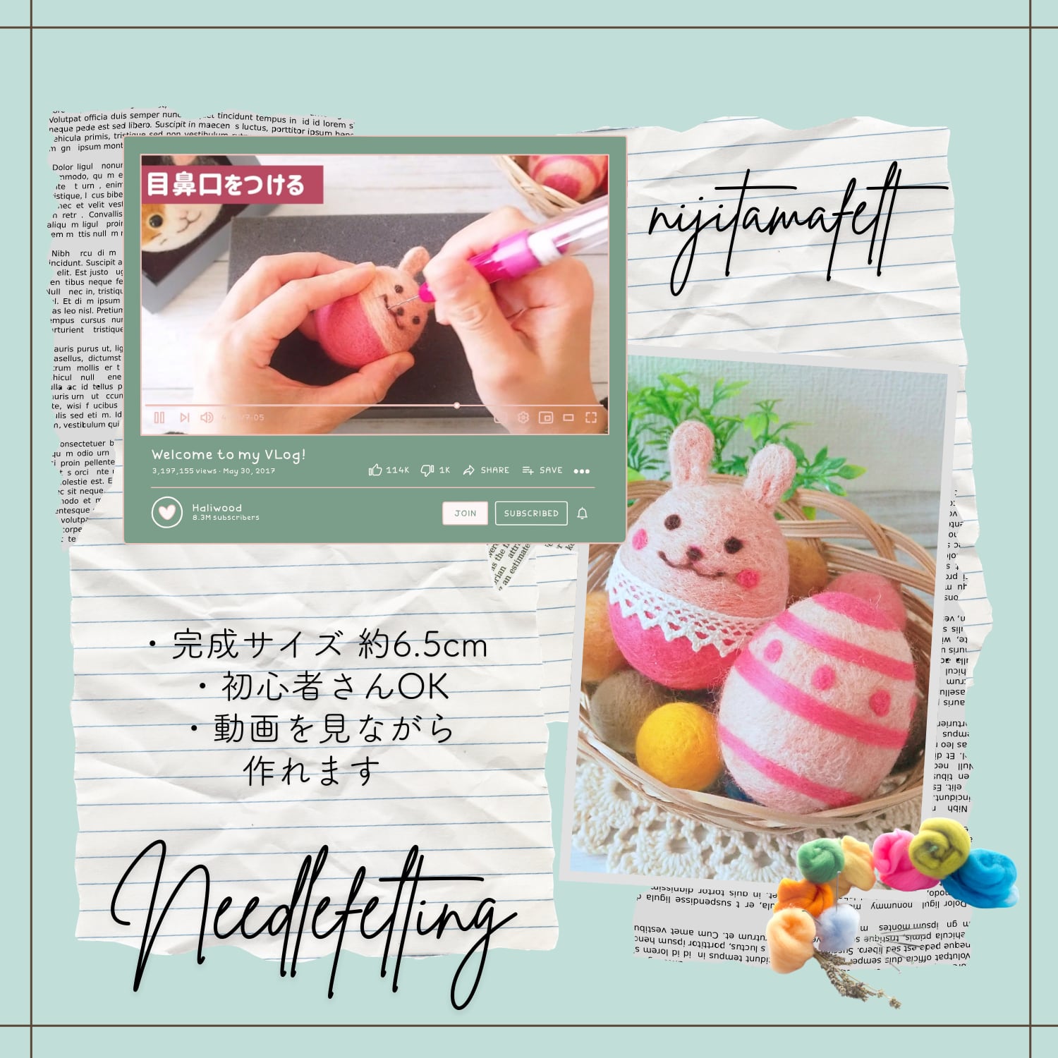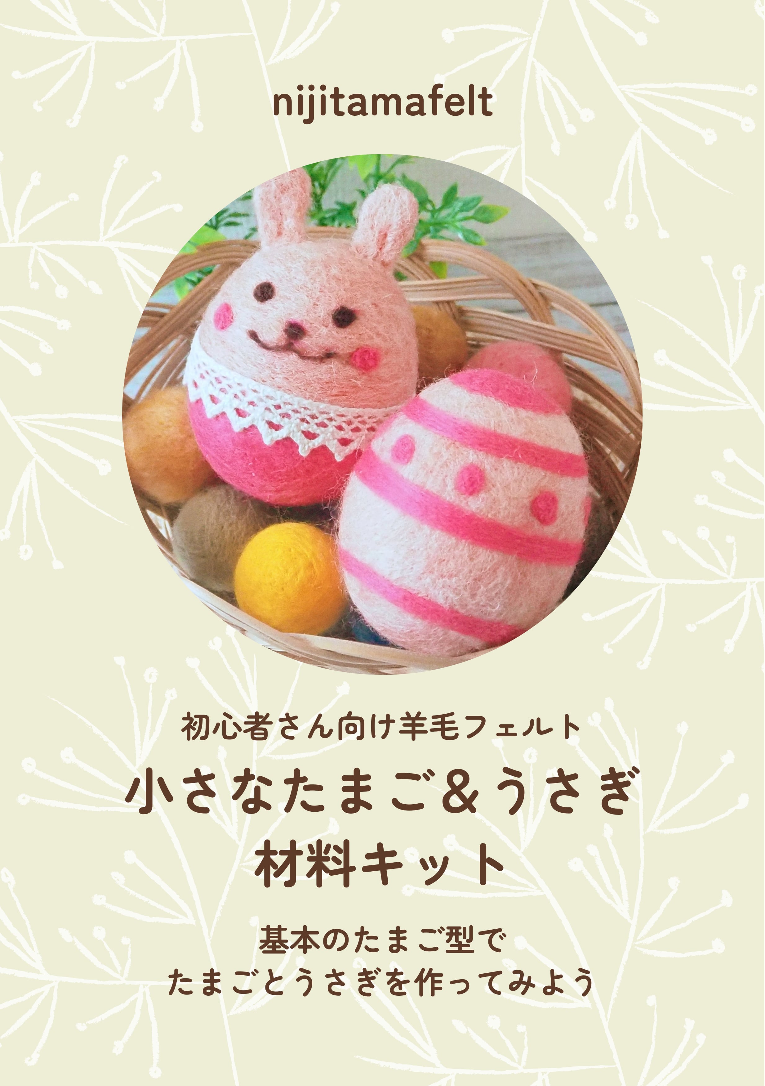 【動画で作れる】小さなうさぎとたまご材料キット|羊毛フェルト