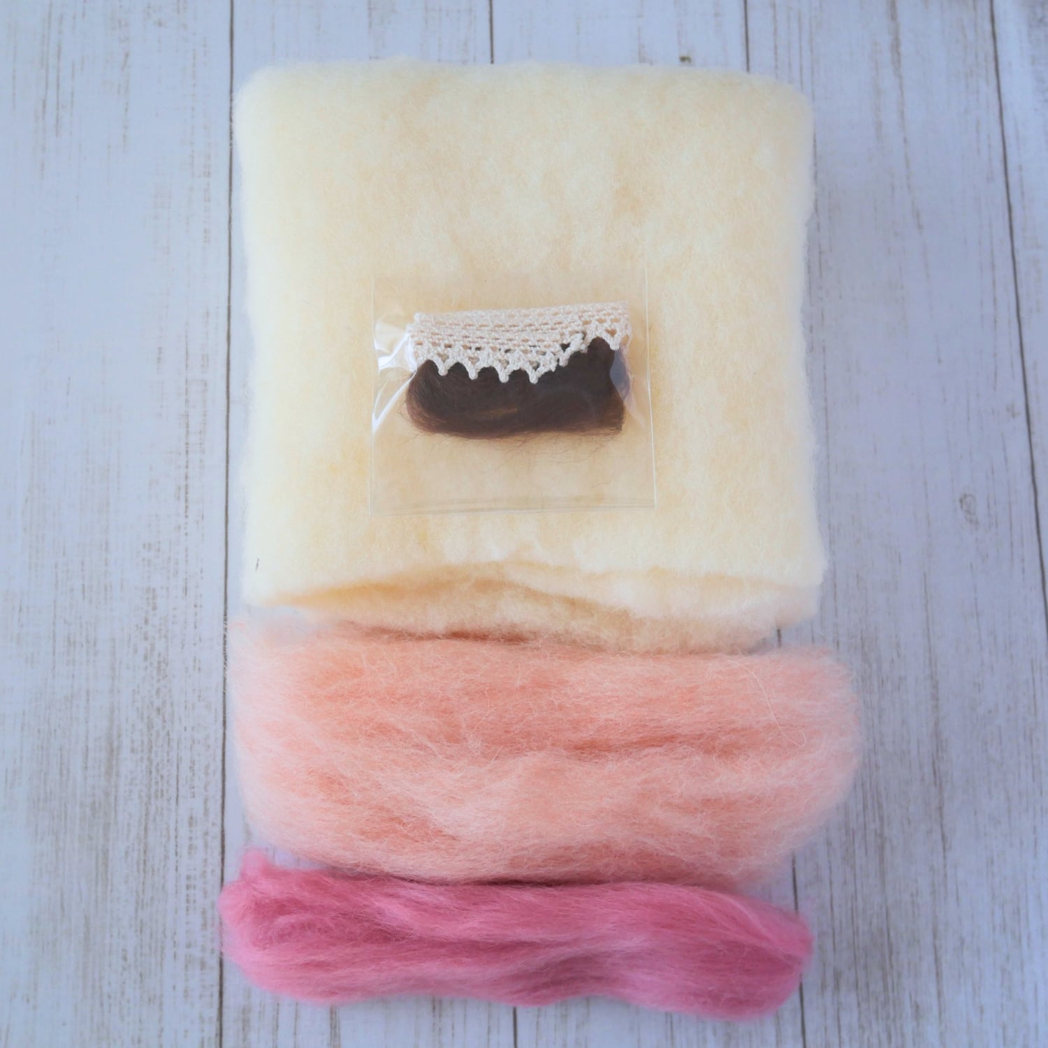 動画を見ながら作れるように、羊毛などの材料をまとめました。
